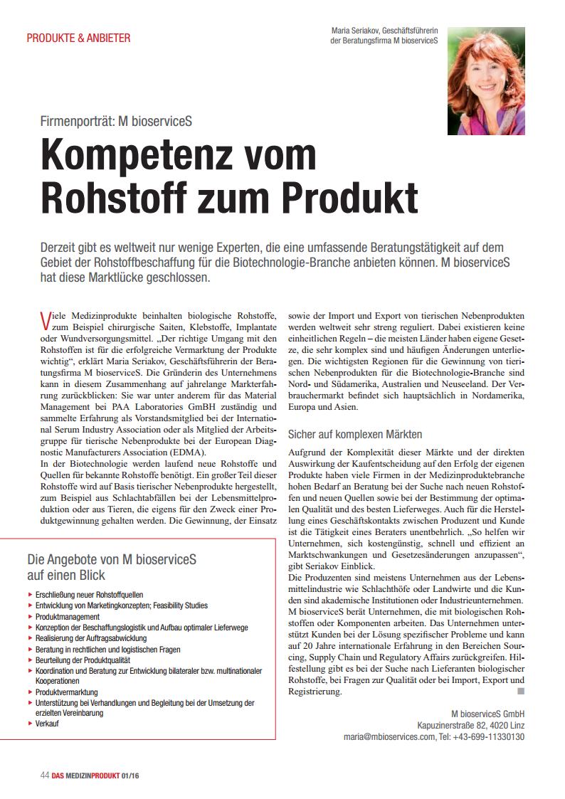 Read about the activities of M bioserviceS in the official magazine of AUSTROMED - "Das Medizinprodukt".