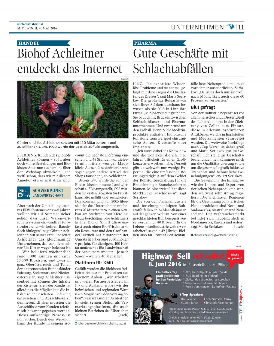 Read about M bioserviceS in the Austrian newspaper WIRTSCHAFTSBLATT